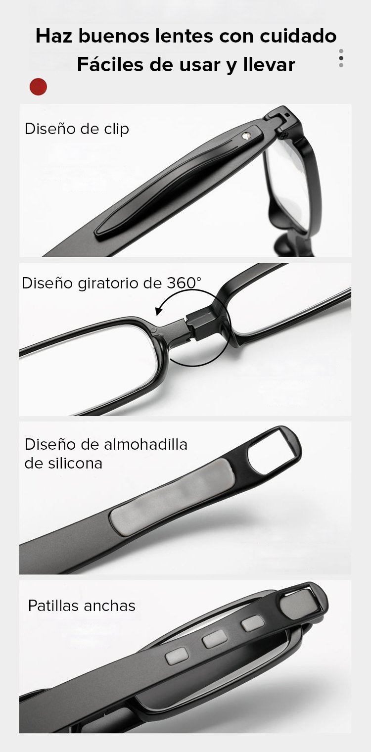 360 grados de gafas de lectura plegables portátiles con rotación